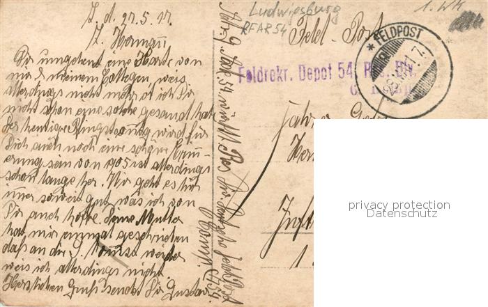 33337154 alte Postkarte 054 Regiment RFAR 054 Feldartillerie Reserve Ludwigsburg Uniformen postalisch gelaufen Feldpost Erhaltung siehe scans [Chrisger] KatCode: 11110008118048