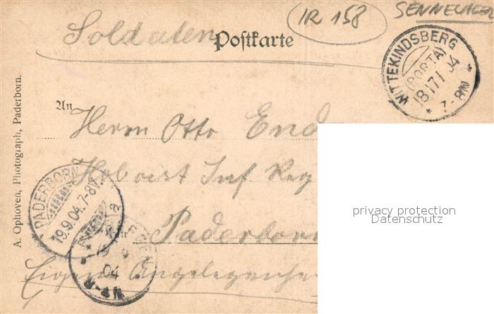 33339056 alte Postkarte 158 Regiment IR 158 Infanterie Paderborn Sennelager Gruppenlager postalisch gelaufen Erhaltung siehe scans [Chrisger] KatCode: 11110005774032