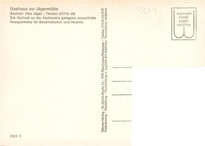 73937572 Aach Hegau Gasthaus zur Jaegermuehle an der Aachquelle Gaststube postalisch nicht gelaufen Erhaltung siehe scans [WerneD78] KatCode: 11110008335001