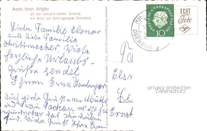 72406286 alte Postkarte Aach Oberstaufen Blick zur Saentisgruppe postalisch gelaufen Erhaltung siehe scans KatCode: 11110009780132