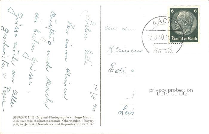 41995813 alte Postkarte Aach Oberstaufen Hermannsberg Sulzberg postalisch gelaufen Erhaltung siehe scans KatCode: 11110009780132