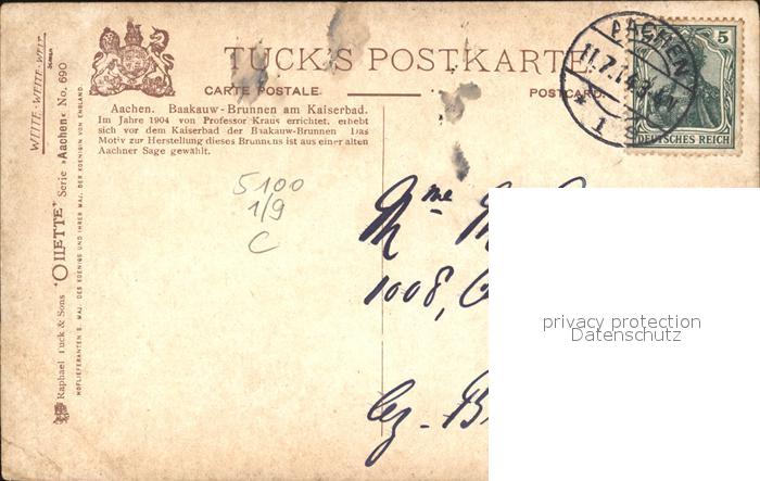 32444982 alte Postkarte Aachen Baakauw-Brunnen Kaiserbad Kuenstlerkarte Oilette postalisch gelaufen Erhaltung siehe scans KatCode: 11110005313000
