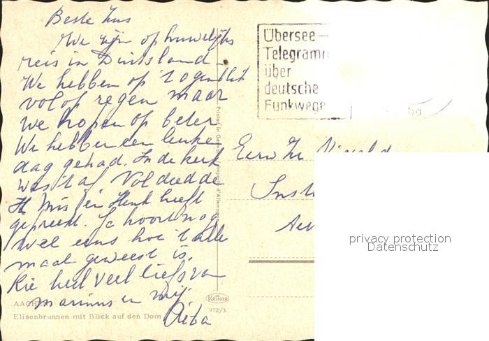 72297239 alte Postkarte Aachen Elisenbrunnen mit Blick auf den Dom postalisch gelaufen Erhaltung siehe scans KatCode: 11110005313000