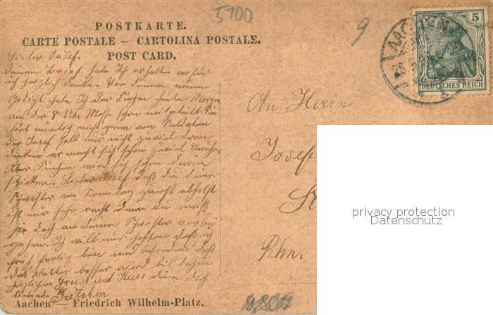 73693687 alte Postkarte Aachen Friedrich Wilhelm-Platz postalisch gelaufen Erhaltung siehe scans [LiesaD40] KatCode: 11110005313000
