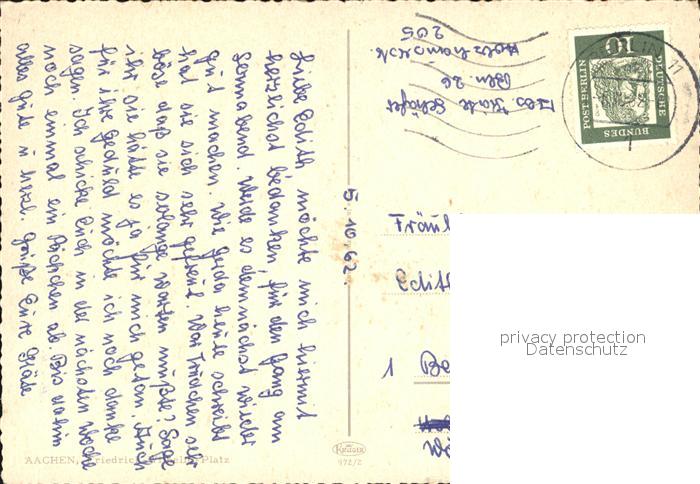 72528430 alte Postkarte Aachen Friedrich Wilhelm Platz postalisch gelaufen Erhaltung siehe scans KatCode: 11110005313000
