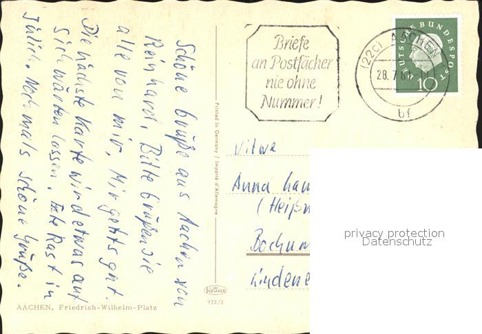 72022071 alte Postkarte Aachen Friedrich Wilhelm Platz postalisch gelaufen Erhaltung siehe scans KatCode: 11110005313000