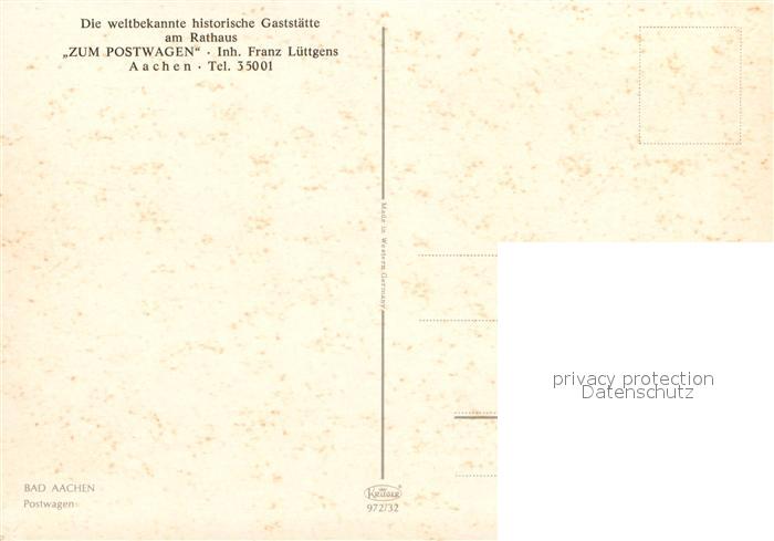 72991282 Aachen Gaststaette am Rathaus Zum Postwagen postalisch nicht gelaufen Erhaltung siehe scans [WerneD78] KatCode: 11110005313000