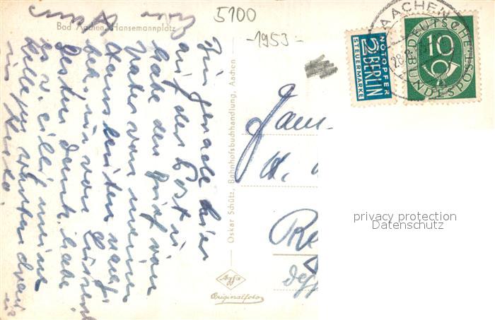 73693727 alte Postkarte Aachen Hansemannplatz postalisch gelaufen Erhaltung siehe scans [LiesaD40] KatCode: 11110005313000
