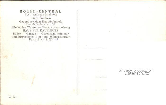 31721693 Aachen Hotel Central Andreas Michaels postalisch nicht gelaufen Erhaltung siehe scans KatCode: 11110005313000