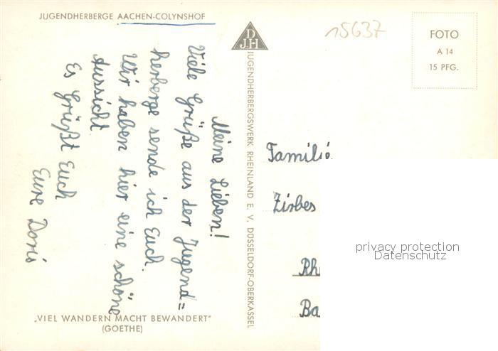 73828733 Aachen Jjugendherberge Aachen Colynshof postalisch nicht gelaufen Erhaltung siehe scans [WerneD78] KatCode: 11110005313000