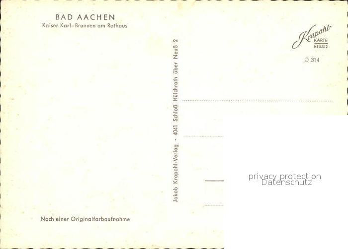71947345 Aachen Kaiser Karl Brunnen am Rathaus postalisch nicht gelaufen Erhaltung siehe scans KatCode: 11110005313000