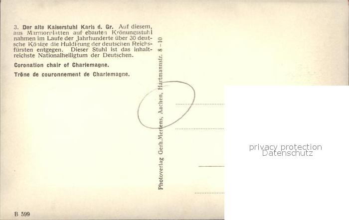 72451611 Aachen Kaiserstuhl des Karls des Grossen postalisch nicht gelaufen Erhaltung siehe scans KatCode: 11110005313000