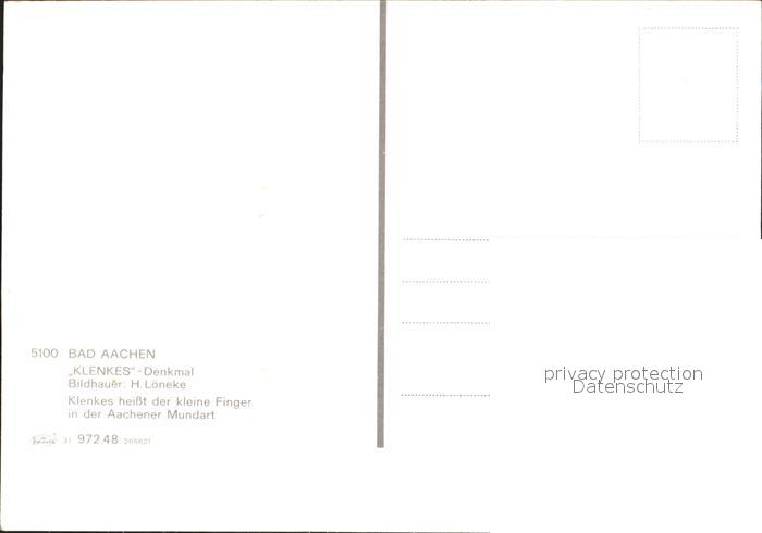 72223753 Aachen Klenkes- Denkmal postalisch nicht gelaufen Erhaltung siehe scans KatCode: 11110005313000