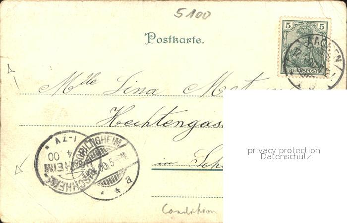 41636355 alte Postkarte Aachen Monheimallee Lousberg Kriegerdenkmal Dom postalisch gelaufen Erhaltung siehe scans KatCode: 11110005313000