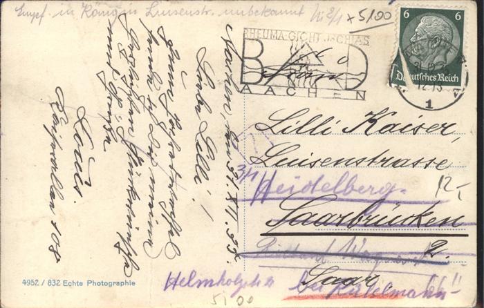 41493387 AACHEN NRW Belvedere am Lousberg postalisch gelaufen Erhaltung siehe scans Alte Ansichtskarte Postkarte alte Postkarte hz_W Katcode 11110005313000