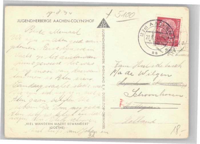 40661955 AACHEN NRW Colynshof Jugendherberge postalisch gelaufen Alte Ansichtskarte Postkarte alte Postkarte Katcode 11110005313000