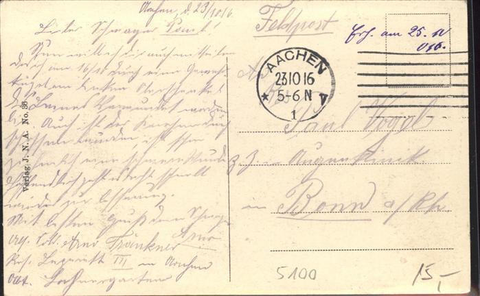 41493386 AACHEN NRW Kgl Maschinenbauschule Feldpost postalisch gelaufen Erhaltung siehe scans Alte Ansichtskarte Postkarte alte Postkarte hz_W Katcode 11110005313000