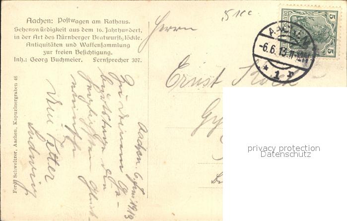 41636198 alte Postkarte Aachen Postwagen am Rathaus postalisch gelaufen Erhaltung siehe scans KatCode: 11110005313000
