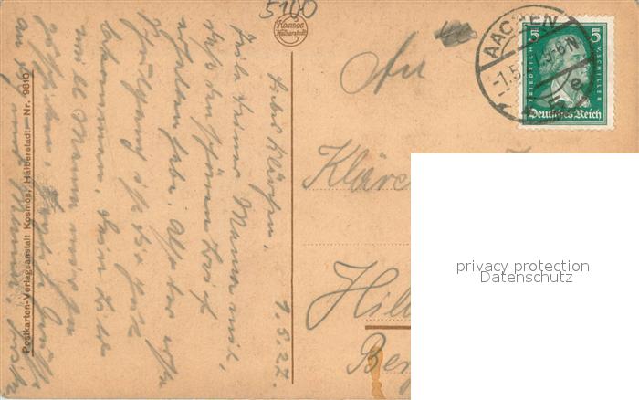 73693730 alte Postkarte Aachen Rathaus Suedseite postalisch gelaufen Erhaltung siehe scans [LiesaD40] KatCode: 11110005313000