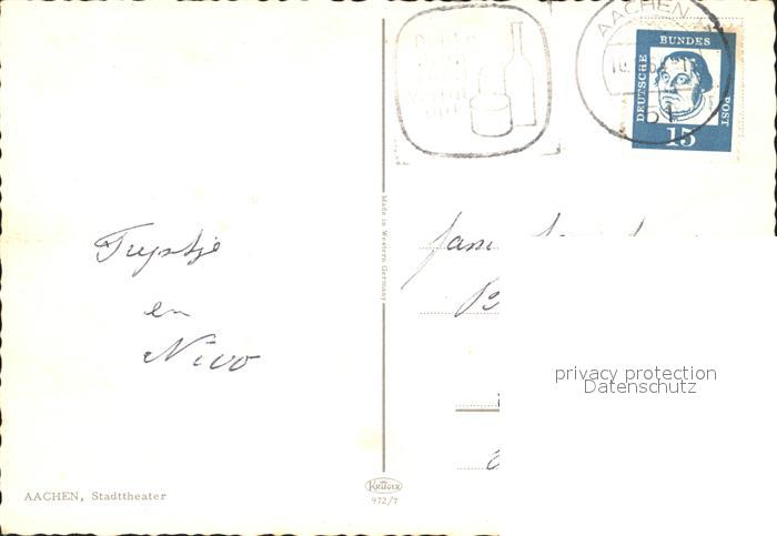 72221907 alte Postkarte Aachen Stadttheater postalisch gelaufen Erhaltung siehe scans KatCode: 11110005313000