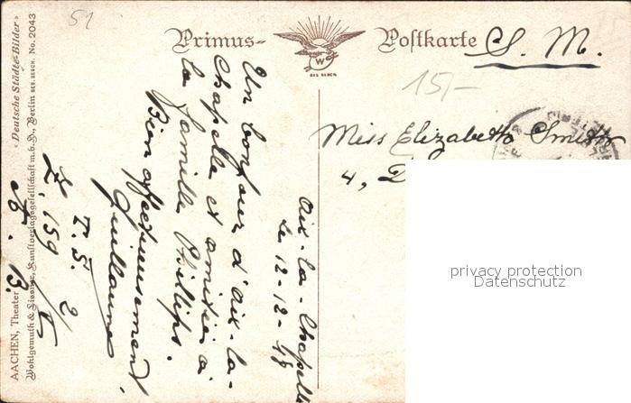 72422220 alte Postkarte Aachen Theater postalisch gelaufen Erhaltung siehe scans KatCode: 11110005313000