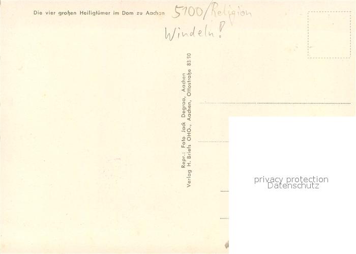 73694828 Aachen Vier Heimligtuemer im Dom Windeln d. Herrn Kleid d. Gottesmutter postalisch nicht gelaufen Erhaltung siehe scans [LiesaD40] KatCode: 11110005313000