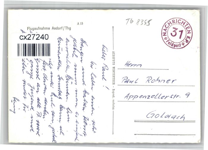 10849582 alte Postkarte Aadorf Fliegeraufnahme postalisch gelaufen KatCode: 11470200615048
