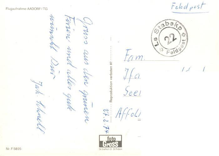 13873327 alte Postkarte Aadorf TG Fliegeraufnahme postalisch gelaufen Feldpost – Stempel Erhaltung siehe scans [WerneD78] KatCode: 11470200615048