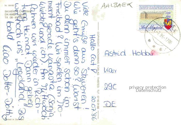 74137667 old postcard Aalbaek DK Skiveren Camping Fliegeraufnahme postalisch gelaufen Erhaltung siehe scans [WerneD78] KatCode: 11100