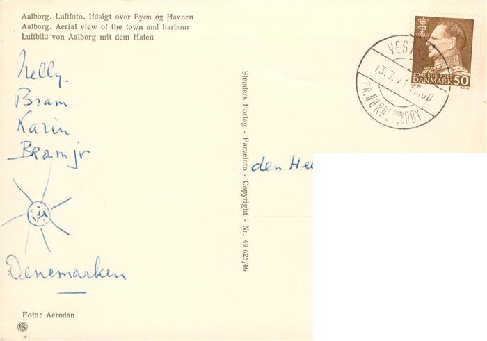 73904734 old postcard Aalborg Udsigt over Byen og Havnen Stadtbild mit Hafen postalisch gelaufen Fliegeraufnahme Erhaltung siehe scans [FriedD77] KatCode: 11100