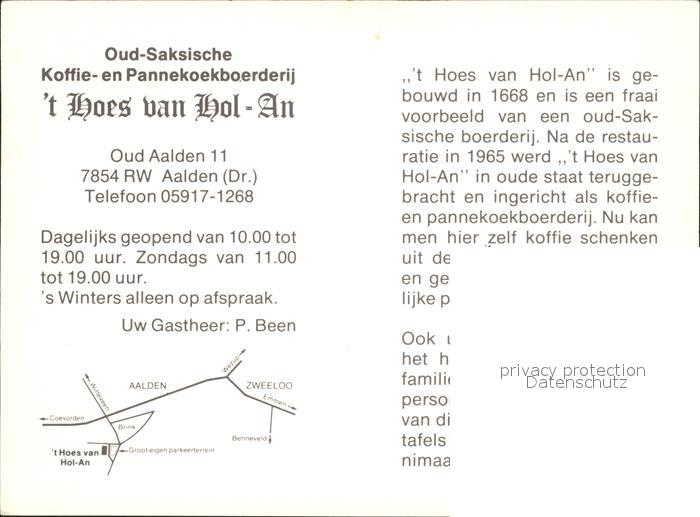 Aalden T Hoes van Hol An postalisch nicht gelaufen Werbekarte (keine Postkarte) Erhaltung siehe scans