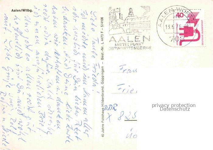 34145610 alte Postkarte Aalen BW Fliegeraufnahme postalisch gelaufen Erhaltung siehe scans [WerneD78] KatCode: 11110008136088