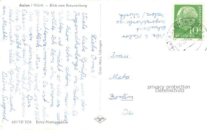 74038337 alte Postkarte Aalen BW Panorama Blick vom Braunenberg postalisch gelaufen Erhaltung siehe scans [FriedD77] KatCode: 11110008136088