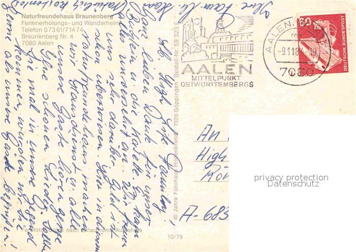 72905553 alte Postkarte Aalen Naturfreundehaus Braunenberg postalisch gelaufen Erhaltung siehe scans [LiesaD40] KatCode: 11110008136088