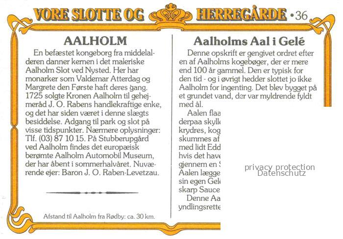 74040349 Aalholm Vore Slotte OG Herregarde Schloss postalisch nicht gelaufen Sammelbild (keine Postkarte) Erhaltung siehe scans [FriedD77] KatCode: 11100