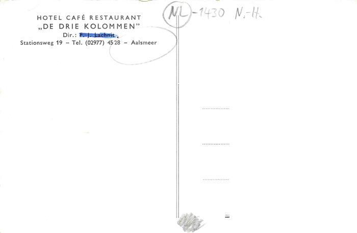 73973725 Aalsmeer Noord-Holland NL Hotel Café Restaurant De Drie Kolommen postalisch nicht gelaufen Erhaltung siehe scans [FriedD77] KatCode: 11370900