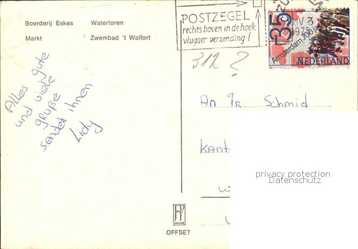 old postcard Aalten Boerderij Eskes Markt Watertoren Zwembad postalisch gelaufen Erhaltung siehe scans [FriedD77]