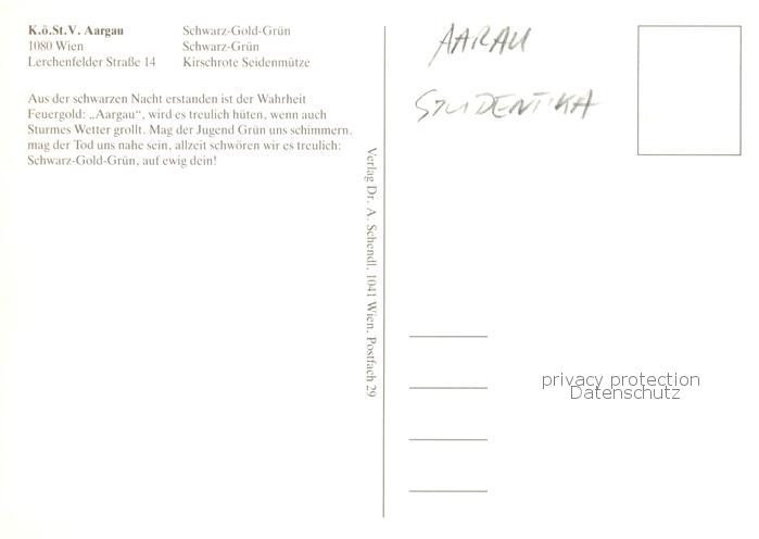 13864823 Aarau AG Aargau Katholische oesterreichische Studentenverbindung Studentika Wappen postalisch nicht gelaufen Erhaltung siehe scans [FriedD77] KatCode: 11470010005002