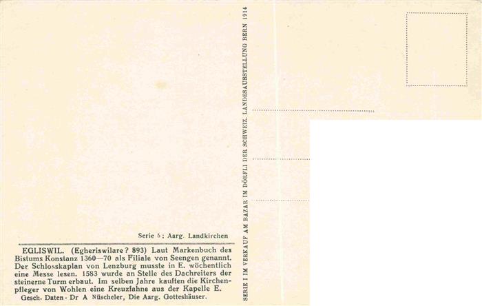 13974268 Aargau Kanton Serie 5 Aargauische Landkirchen Kuenstlerkarte postalisch nicht gelaufen Erhaltung siehe scans [FriedD77] KatCode: 11470010005002