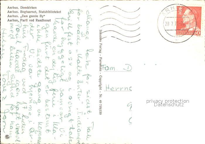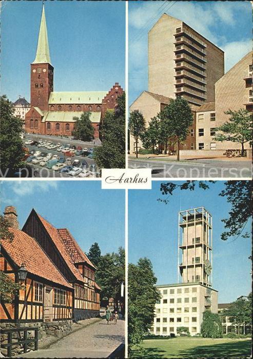 old postcard Aarhus Domkirche Stadtbibliothek Den gamle By postalisch gelaufen Erhaltung siehe scans