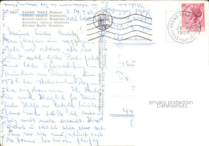 old postcard Abano Terme Antiche sorgenti Montirone postalisch gelaufen Erhaltung siehe scans