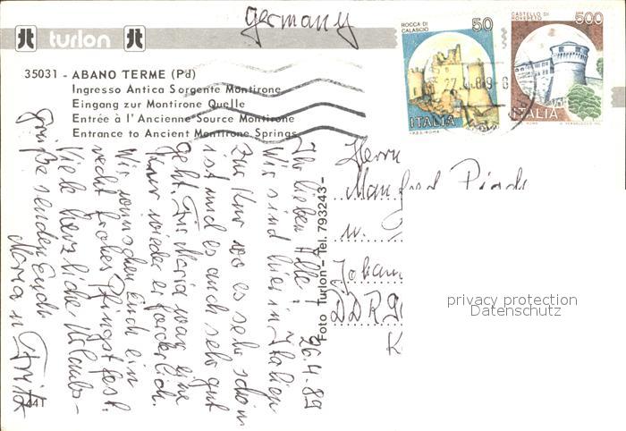 old postcard Abano Terme Antico Sorgente Montirone postalisch gelaufen Erhaltung siehe scans