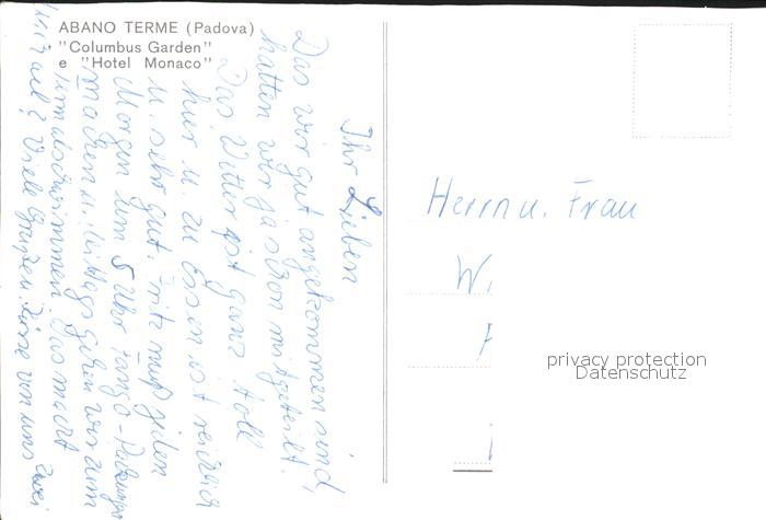 Abano Terme Columbus Garden Hotel Monaco postalisch nicht gelaufen Erhaltung siehe scans