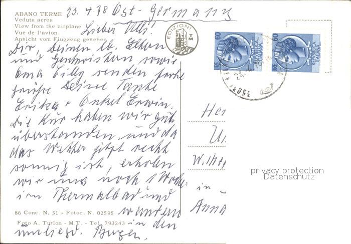 old postcard Abano Terme Fliegeraufnahme postalisch gelaufen Erhaltung siehe scans