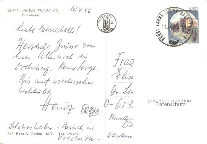 old postcard Abano Terme Fliegeraufnahme postalisch gelaufen Erhaltung siehe scans