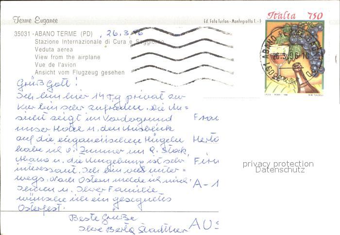 old postcard Abano Terme Fliegeraufnahme postalisch gelaufen Erhaltung siehe scans