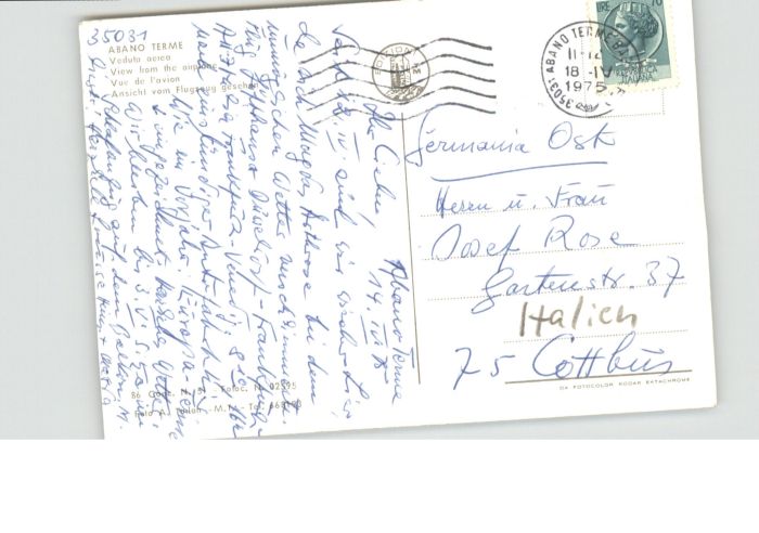 old postcard Abano Terme Fliegeraufnahme postalisch gelaufen