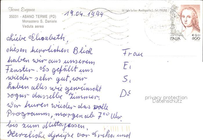 old postcard Abano Terme Fliegeraufnahme Monastero S. Daniele postalisch gelaufen Erhaltung siehe scans