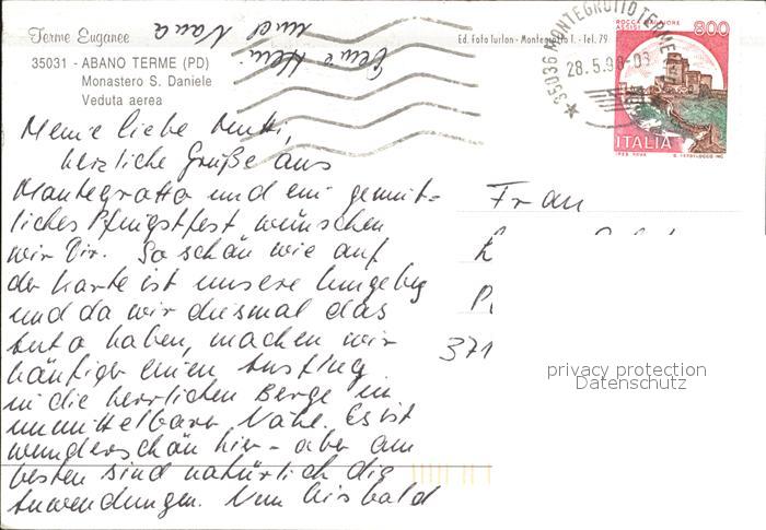 old postcard Abano Terme Fliegeraufnahme Monastero S. Daniele postalisch gelaufen Erhaltung siehe scans