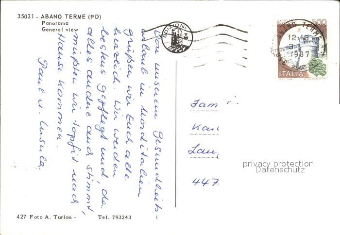 old postcard Abano Terme Gesamtansicht postalisch gelaufen Erhaltung siehe scans